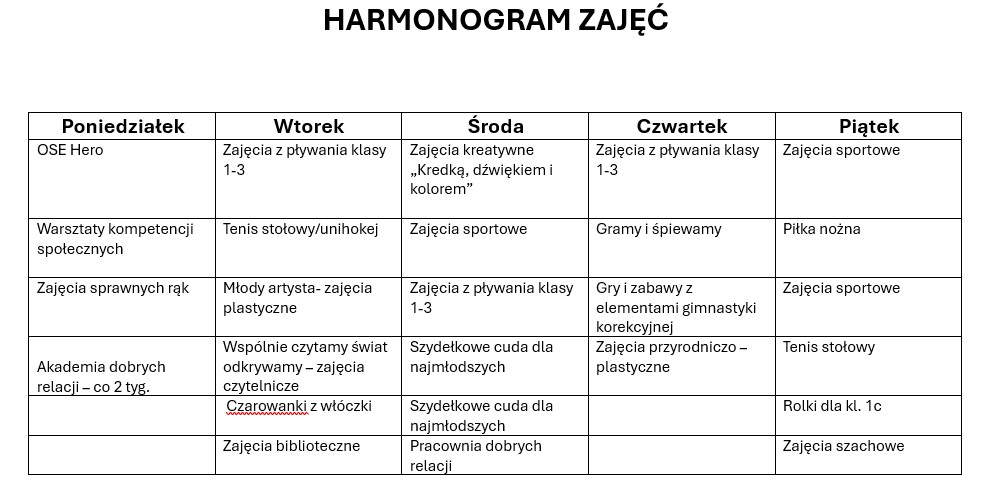 czas przed lekcjami, a także miło i aktywnie oczekiwały na odbiór przez