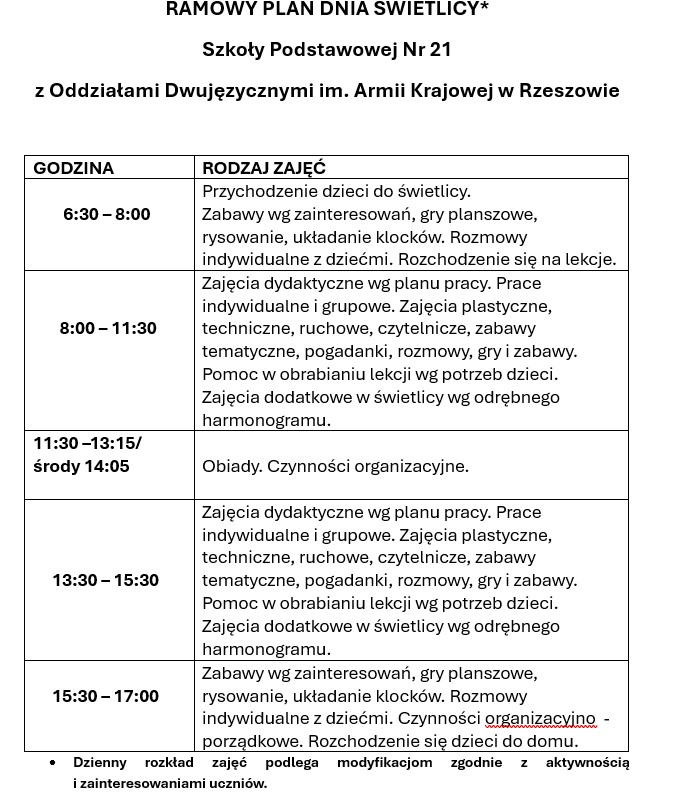 świetlicy szkolnej